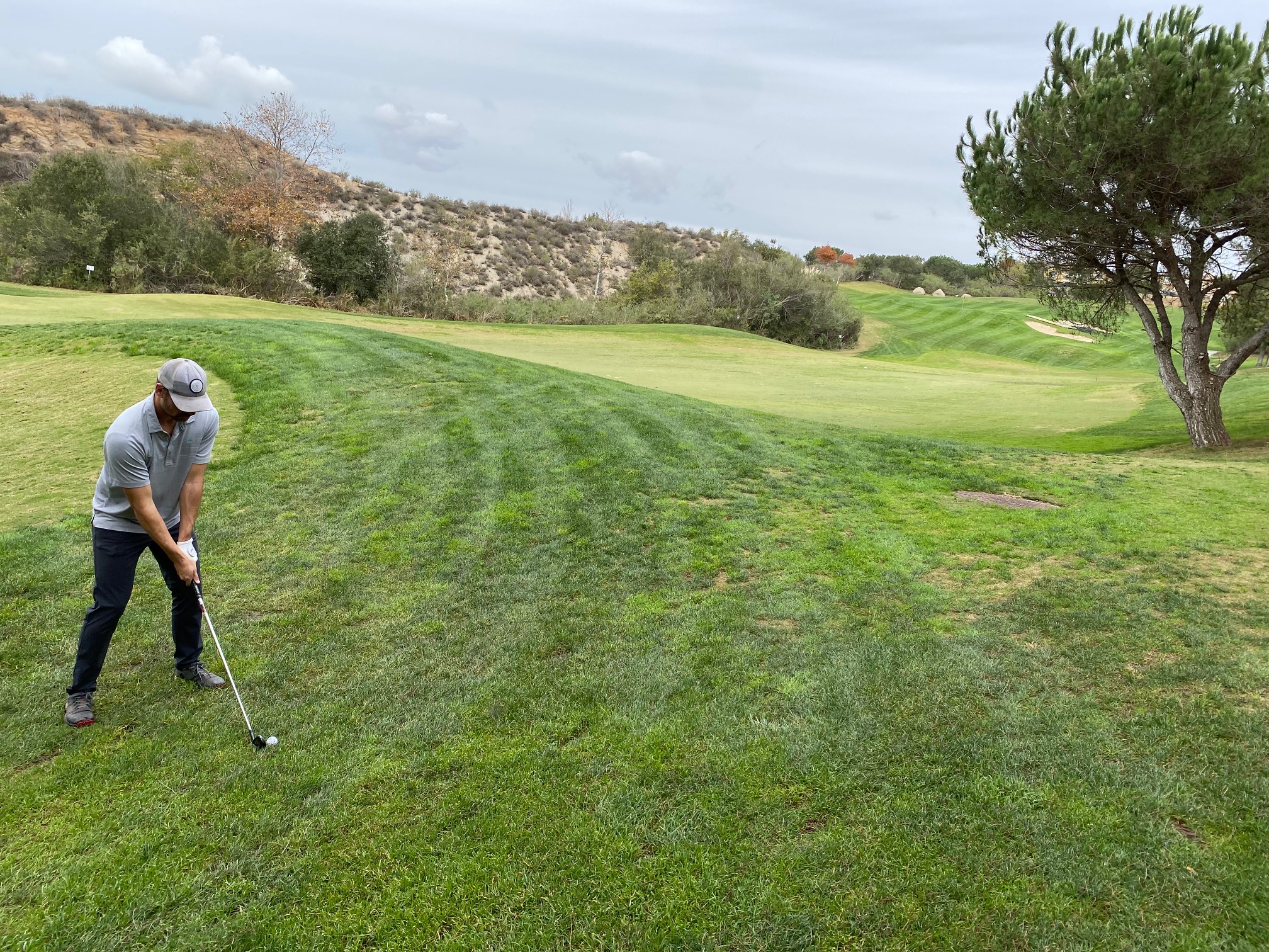 This time was no different. I hit my driver off the tee and somehow overswung and hooked it right, along the cart path, into the lateral hazard left. On top of a 6-foot tall retaining wall.