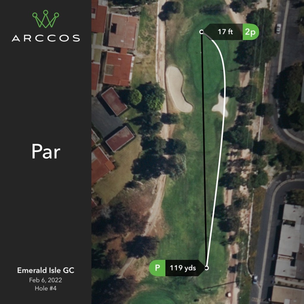 I was pin high, 17 feet left of the hole. Easy putt close and tapped in for a par (although I was definitely thinking birdie).