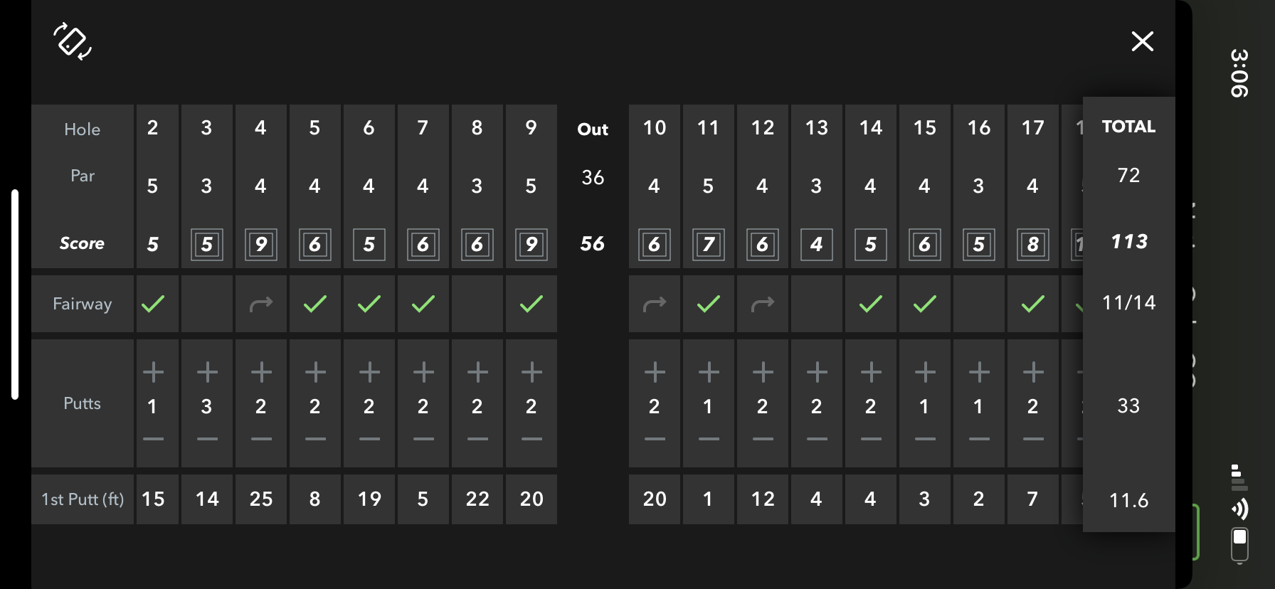Story of this round was that I had 47 putts for a 116. I think I had 9 putts lip out, including a 5-putt after 2 lip outs on 17.