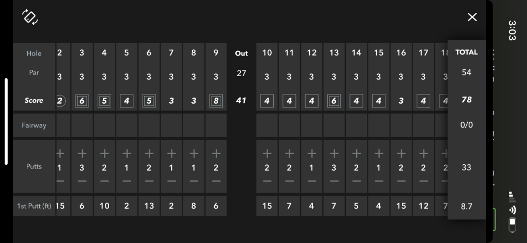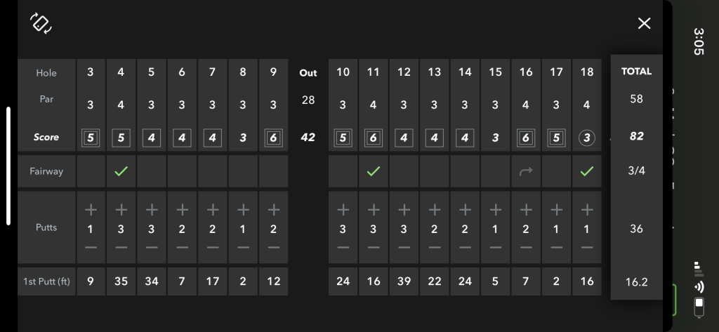 If I kept it on the course, that’s a 108 and that’s with terrible putting and literally whacking it around the course.
